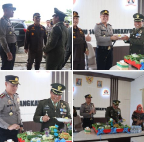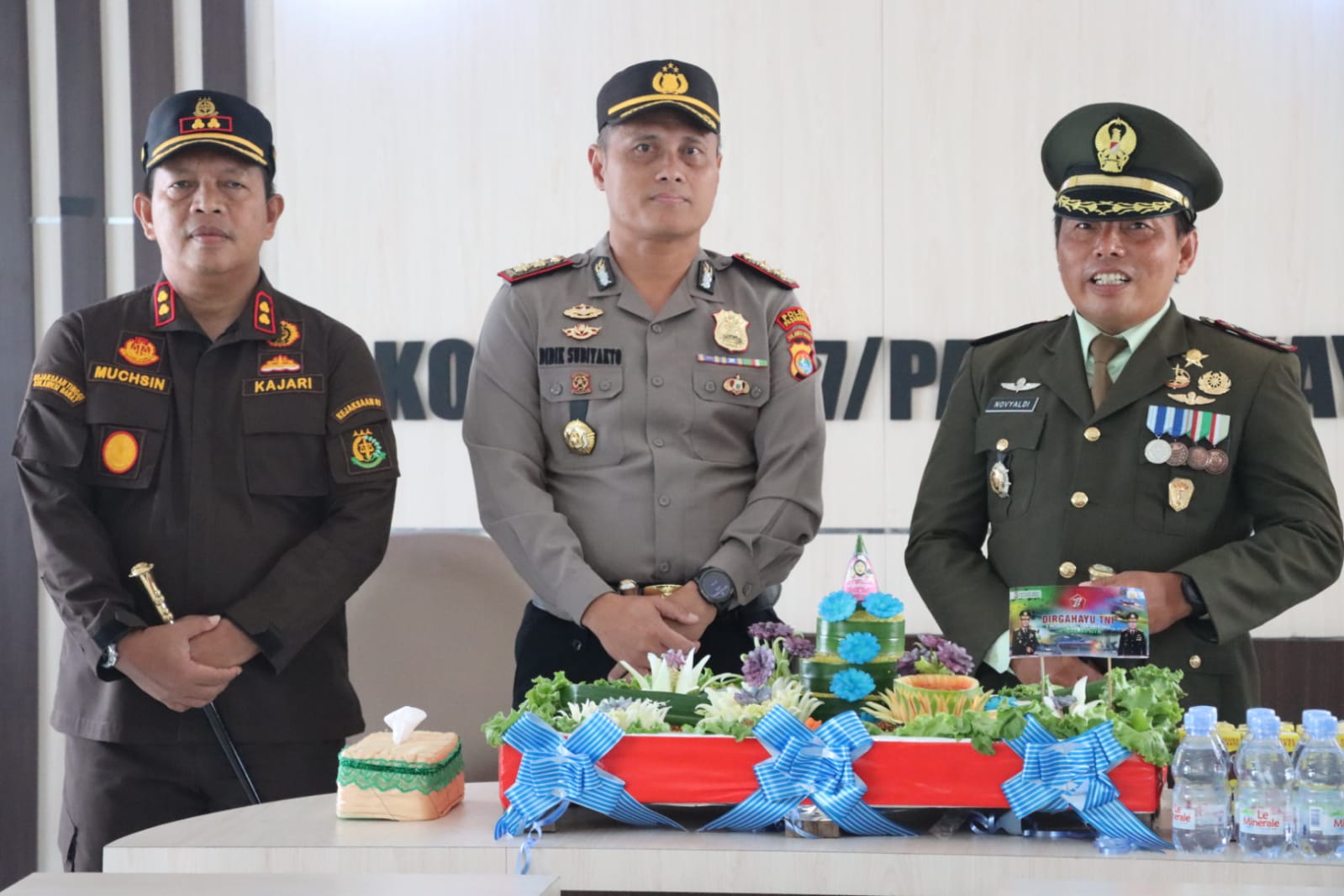 Kapolres Pasangkayu memberikan kejutan berupa tumpeng dalam rangka Hut TNI ke 77 yang disambut oleh Dandim 1427/Pasangkayu Letkol Inf. Novyaldi S.E bersama Kajari Pasangkayu Muchsin S.H, Wakapolres Pasangkayu Kompol Eduard Steffry Allan Telussa S.I.K, M.Si para perwira dan Personel.