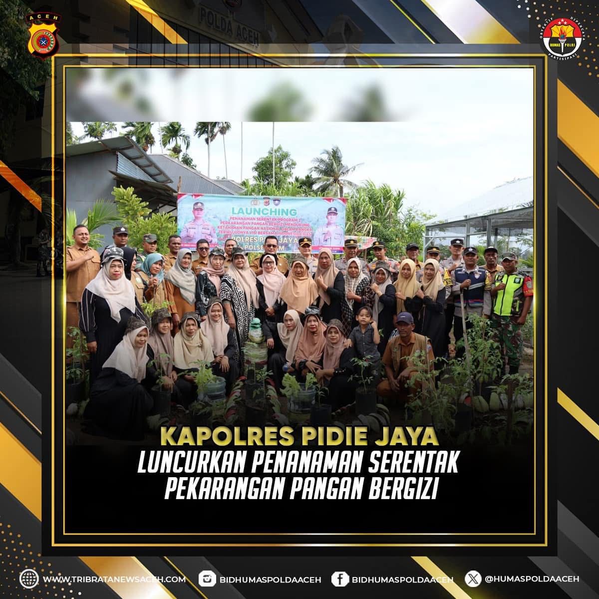 INFOINDONESIAINEWS.COM | PIDIE JAYA – Dalam upaya mendukung ketahanan pangan nasional dan mewujudkan visi bersama Indonesia Emas, Kapolres Pidie Jaya AKBP Ahmad Faisal Pasaribu, S.H., S.I.K., M.H., bersama Pj. Bupati Pidie Jaya Dr. T. Dadek Ahmad, S.H., M.H., secara resmi meluncurkan program Penanaman Serentak Pekarangan Pangan Bergizi pada Senin (13/01/2025) di Gampong Dayah Baroh, Kecamatan Ulim, Kabupaten Pidie Jaya.