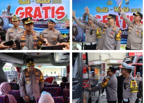 Kapolresta Banyuwangi menyapa pemudik dan warga masyarakat yang ikut program Balik Mudik Gratis dengan mengucapkan Selamat Hari Raya Idul Fitri 1444 H.