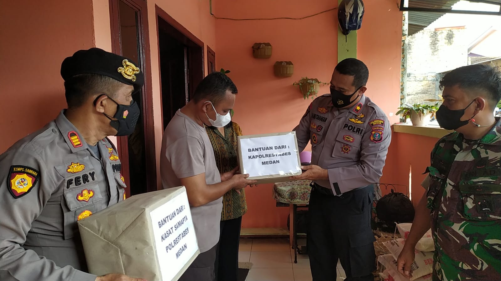 Kondisi ini memantik empati Kapolrestabes Medan Kombes Pol Valentino Alfa Tatareda.SIK.MS.i yang diwakali Kasat Samapta Kompol Pardamean Hutahaean.SH.SIK.MH, langsung memberikan bantuan Sosial untuk anggota tersebut yang mengalami musibah
