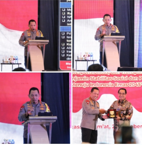 Kapolri mengulas bahwa Saat ini yang paling krusial, kita memasuki tahapan Pemilu dan ini bisa jadi menjadi sebuah ancaman yang bisa berubah menjadi konflik bila tidak hati-hati.