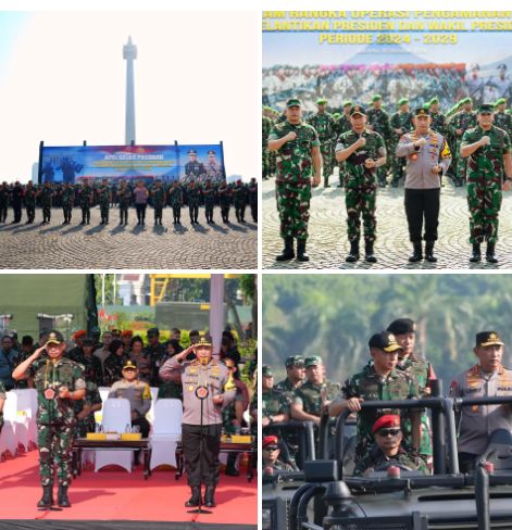 INFOINDONESIAINEWS.COM| JAKARTA – Kapolri bersama Panglima TNI memimpin Apel Gelar Pasukan Pengamanan VVIP Pelantikan Presiden RI dan Wakil Presiden RI di Lapangan Silang Monas, Jakpus.