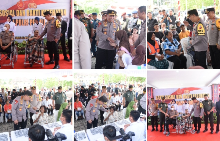 infoindonesiainews.com | MALUKU = Kapolri Jenderal Polisi Drs. Listyo Sigit Prabowo dan Panglima TNI Jenderal Agus Subiyanto memberikan bantuan kesehatan serta bantuan sosial kepada masyarakat di Maluku. Bantuan tersebut diberikan dalam rangka mendekatkan diri dengan masyarakat dan mengajak terwujudnya Pemilu 2024 aman dan damai.