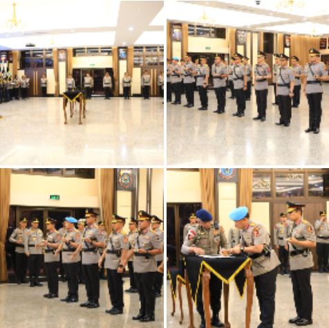 “Hari ini ada dua acara serah terima jabatan PJU Kapolda dan korps raport kenaikan pangkat Pati. Untuk PJU yang hari ini serah terima Kadiv Propam. Kemudian untuk Kapolda ada Kapolda Sumatra Utara, Kapolda Bangka Belitung, Kapolda Bali, Kapolda Bengkulu, Kapolda Kaltara, Kapolda Maluku serta satu pejabat utama pejabat utama yang alih tugas yaitu staf Ahli Kapolri,” kata Dedi.
