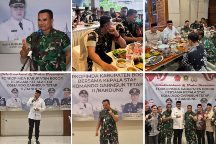 BOGOR , JABAR – Menjalin kebersamaan di bulan Suci Ramadhan Kas Kogartap II/Bdg Marsma TNI Novlamirsyah, S.E., M.Tr (Han) didampingi Asops Letkol Inf Wisnu Joko Saputro ,Asmin Kolonel Adm Dimas Sholeh Budiharta, S.E. ,Dandenpom Gar Letkol Pom Kusumo Hartatmo S.H. ,Kasi Intel Letkol Novi Andri,Pasirengar Mayor Cku M.Badarul Yasin S.E, ADC Kasgar Lettu Inf Yaya dan Kasub Kogartap 0606/Bgr Mayor Inf Irwan Suwarna beserta jajaranya melakukan silaturahmi dan buka puasa bersama dengan Forum Koordinasi Pimpinan Daerah (Forkopimda) Kabupaten Bogor, yang berlangsung di Resto Bumi Aki Cibinong yang menjadi ajang memperkuat sinergi antara TNI dan pemerintah daerah dalam menjaga stabilitas wilayah, pada Jumat (13/3/2025).