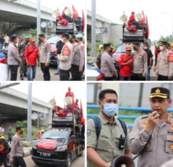 KOTA TANGERANG |Polres Metro Tangerang Kota kerahkan 61 Personil gabungan Polri -TNI Kawal buruh menuju Jakarta di perbatasan Jalan Daan Mogot KM 19,8, Poris Jaya Kecamatan Batuceper Kota Tangerang, Banten.