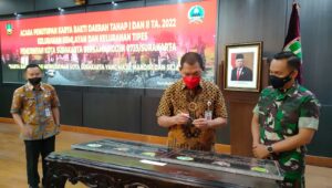 SURAKARTA | Bertempat di Bale Tawangarum Komplek Balaikota Surakarta Jl. Jend. Soedirman No. 2 Kelurahan Kampung Baru Kecamatan Pasarkliwon telah dilaksanakan penutupan Karya Bhakti Daerah (KBD) Tahap I Dan Tahap II Tahun 2022 Kelurahan Kemlayan dan kelurahan Tipes dengan tema “Karya Bhakti Daerah mewujudkan kota Surakarta yang maju, Mandiri dan Sejahtera” yang di selenggarakan oleh pemerintah kota Surakarta bekerjasama dengan kodim 0735 /Surakarta dengan dihadiri 50 orang peserta.