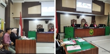 Di dalam proses persidangan itu, para terdakwa (Danuri dan Nur Efendi) tidak dihadirkan secara tatap muka, hanya melalui layar monitor dari Rutan Pemalang.