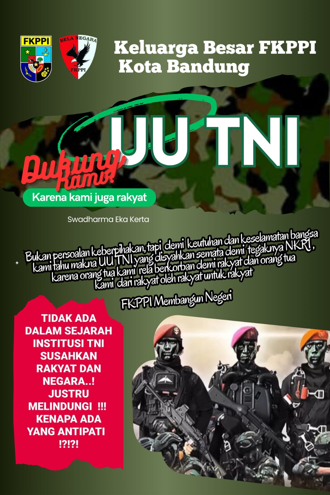 “Kami sebagai Kelurga Besar Forum Komunikasi Putra- Putri TNI-POLRI (FKPPI) 10.09 Kota Bandung mendukung penuh pengesahan RUU TNI,” kata Adde.