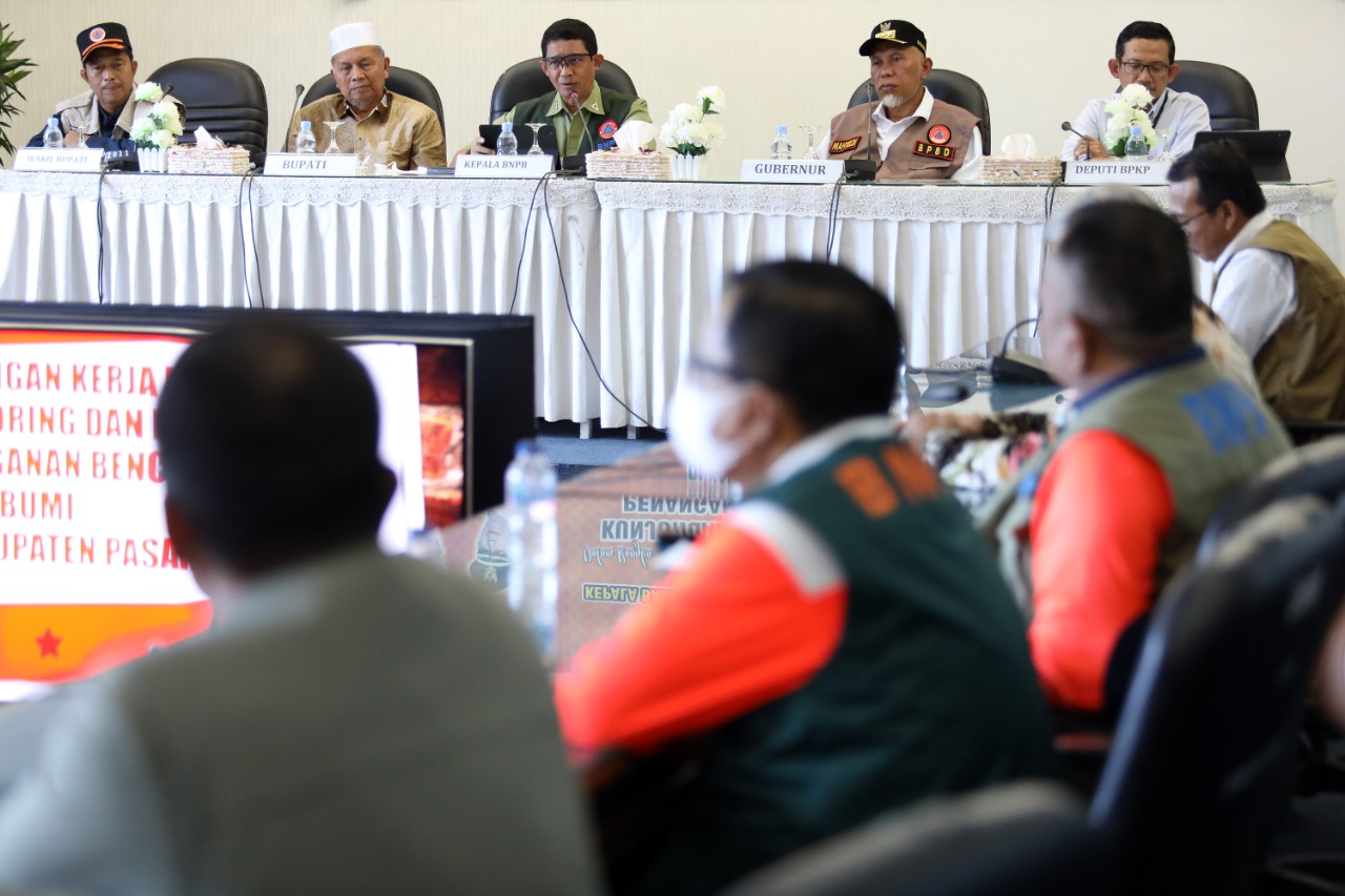 PASAMAN BARAT | Kepala Badan Nasional Penanggulangan Bencana (BNPB) Letjen TNI Suharyanto S.Sos., M.M., mendorong Pemerintah Kabupaten Pasaman Barat untuk segera menuntaskan segala hal yang berkaitan dengan proses rehabilitasi dan rekonstruksi dari bencana Gempabumi Magnitudo 6.1 Pasaman Barat yang terjadi pada 25 Februari 2022.
