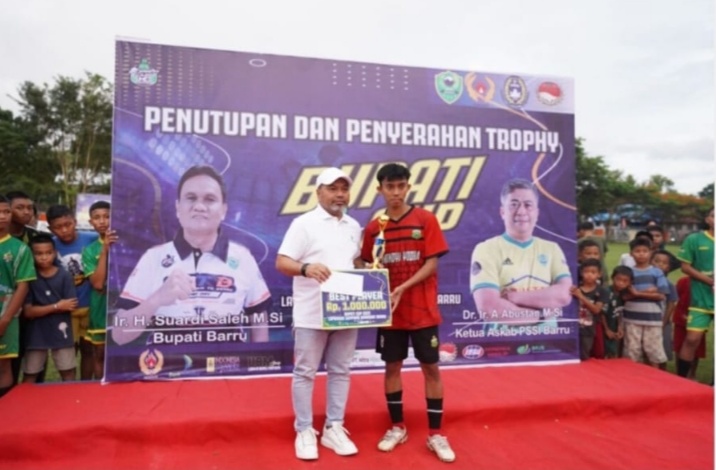 Pada kesempatan itu Kepala Cabang Bank Sulselbar Syahrir Fajaruddin didaulat panitia untuk menyerahkan piala dan uang pembinaan kepada pemain terbaik dari PS POP Barru