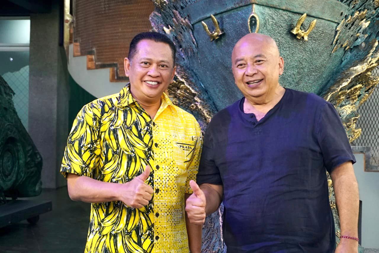 BANDUNG, JABAR | Ketua MPR RI Bambang Soesatyo sekaligus Wakil Ketua Umum Partai Golkar mengapresiasi berbagai karya patung maestro seni asal Bali, I Nyoman Nuarta. Lebih dari ratusan patung berhasil dibuat pria kelahiran Tabanan 70 tahun silam ini. Sejumlah mahakarya yang terkenal antara lain, Patung Garuda Wisnu Kencana di Bali yang kini tidak saja menjadi pariwisata ikon Bali, tapi juga telah menjadi kebanggaan Indonesia. Untuk itu, Bamsoet mengusulkan agar mahakarya seni tersebut menjadi aset nasional. Mengingat patung GWK ini menjadi patung tertinggi di dunia dan mampu mengalahkan Patung Liberty di Amerika Serikat. Total ketinggian patung ini mencapai 121 meter dan lebar 64 meter.