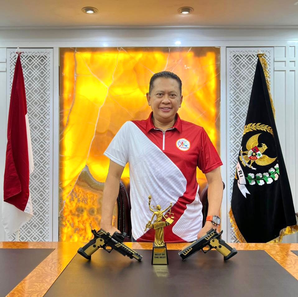 JAKARTA | Ketua MPR RI sekaligus Dewan Penasihat Persatuan Berburu dan Menembak Seluruh Indonesia (Perbakin) Bambang Soesatyo berhasil menyabet Juara Pertama Best of The Best Kelas Eksekutif Kejuaraan Menembak Jaksa Agung Cup 2022 setelah mengalahkan Kepala BNN Komjen Pol Petrus Golose, Wakil Jaksa Agung Dr Sunarta dan Kajati Kalimantar Barat Mashudi.