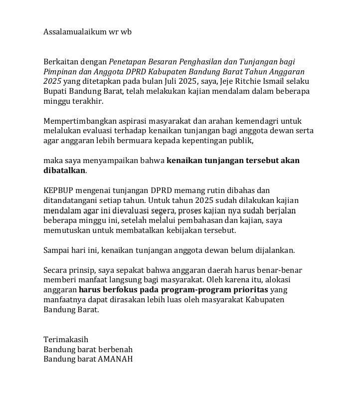 Dimana sebelumnya juga viral dan ramai dibicarakan publik terkait Ketua Pokja Wartawan Kabupaten Bandung Barat (KBB) meminta Bupati KBB untuk membatalkan kenaikan tunjangan anggota DPRD KBB sebesar Rp83,5 juta per bulan .