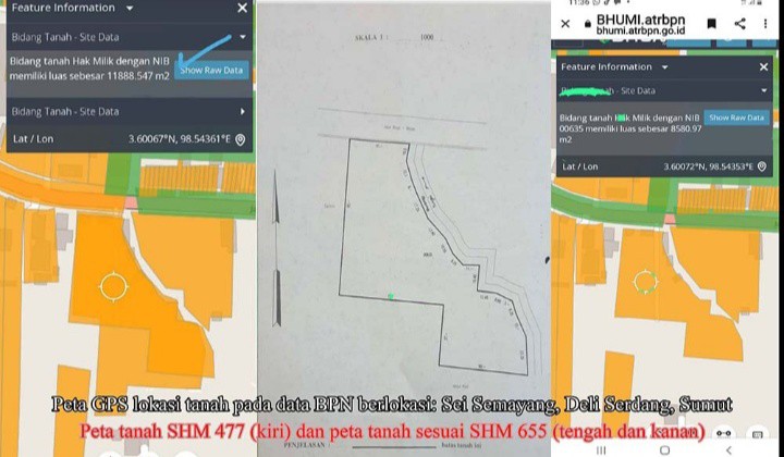 Berdasarkan fakta lapangan, salah satu kejanggalan yang amat jelas terlihat di BPN Deli Serdang adalah terkait peta GPS satelit yang diduga kuat telah diubah oleh oknum BPN. Ketika diakses pada bulan Agustus 2022, yang muncul adalah peta lahan SHM Nomor 477 atas nama Sihar Sitorus, seluas 11.888 meter persegi yang diterbitkan pada 19 Februari 2007. Namun aneh bin ajaib, di peta GPS tersebut tidak muncul Nomor Induk Buku (NIB). Padahal, data peta GPS yang sama, di lokasi tanah yang sama, saat diakses pada sekitar tahun 2018, tertera informasi tanah tersebut atas nama pemilik Legiman Pranata, SHM Nomor 655 dengan luas lahan 8.580 meter persegi, NIB 00635, diterbitkan tanggal 26 Desember 2012.
