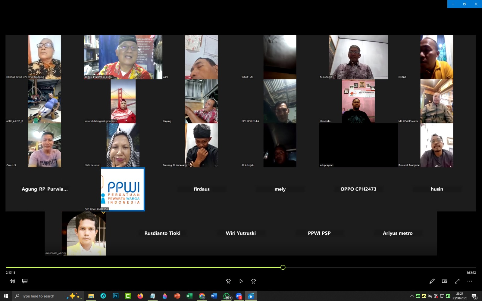 Ketua Umum PPWI Wilson Lalengke menyampaikan “Alhamdullilah, rapat online PPWI Nasional dalam rangka Persiapan Pelaksanaan Rakernas dan Resepsi HUT Ke-18 PPWI tahun 2025, telah sukses dilaksanakan sesuai jadwal,”ungkapnya , pada hari Sabtu, 23 Agustus 2025, pukul 19.00 s/d 21.45 Wib.