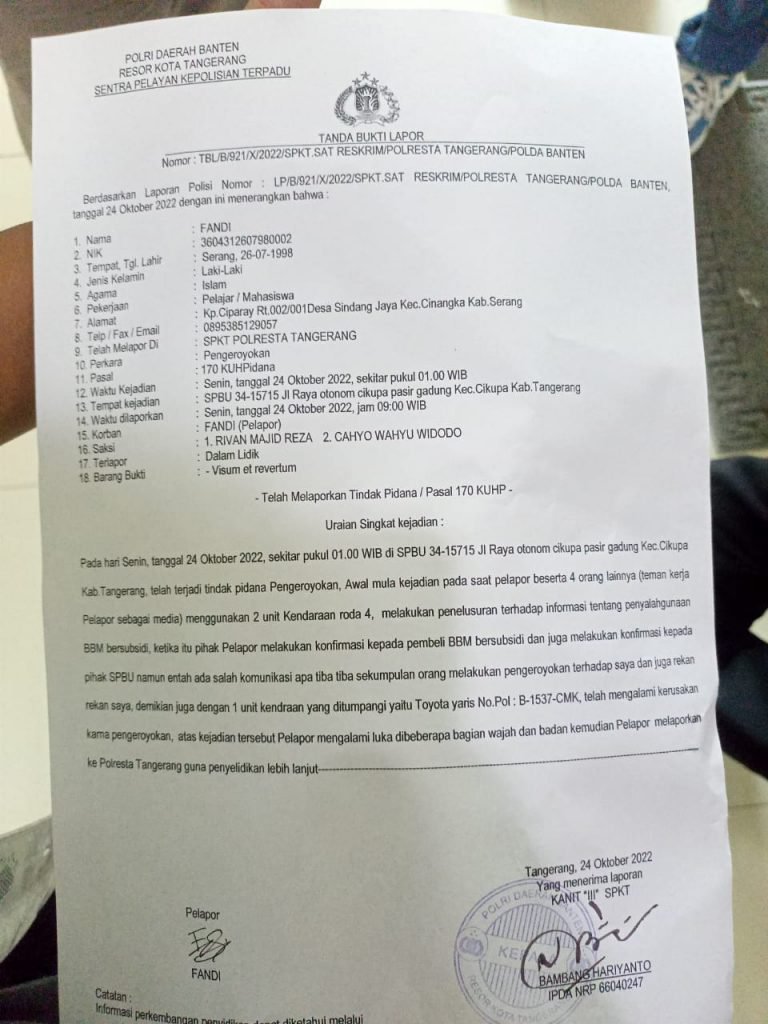 Baca juga: Wartawan Korban Kekerasan SPBU Gandeng Pengacara PPWI (https://pewarta-indonesia.com/2022/10/wartawan-korban-kekerasan-spbu-gandeng-pengacara-dpn-ppwi/)