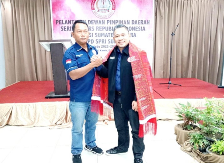 infoindonesiainews.com | KOTA MEDAN – Dewan Pimpinan Daerah Serikat Pers Republik Indonesia Provinsi Sumatera Utara resmi dilantik oleh DPP SPRI. Ketua Umum SPRI Hence Mandagi melantik langsung Burju Simatupang selaku Ketua DPD SPRI Sumut bersama jajaran pengurus lainnya di Hotel Saka, Kota Medan, Kamis (23/11/2023).