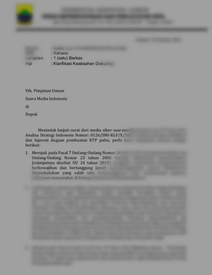 CIANJUR , JABAR – Untuk menindaklanjuti berita terkait viralnya di beberapa media online, yang menyebutkan bahwa adanya dugaan Warga Israel yang memiliki KTP Elektronik Palsu beralamat di Kabupaten Cianjur, Jawa Barat adalah Hoax , untuk klarifikasi Hoax tersebut telah dinyatakan melalui surat dari suaramediainonesia.com Nomor: 0126/SMI-KLF/X/2025 perihal meminta klarifikasi yang di layangkan pada tanggal, Rabu, (28/10/2025).