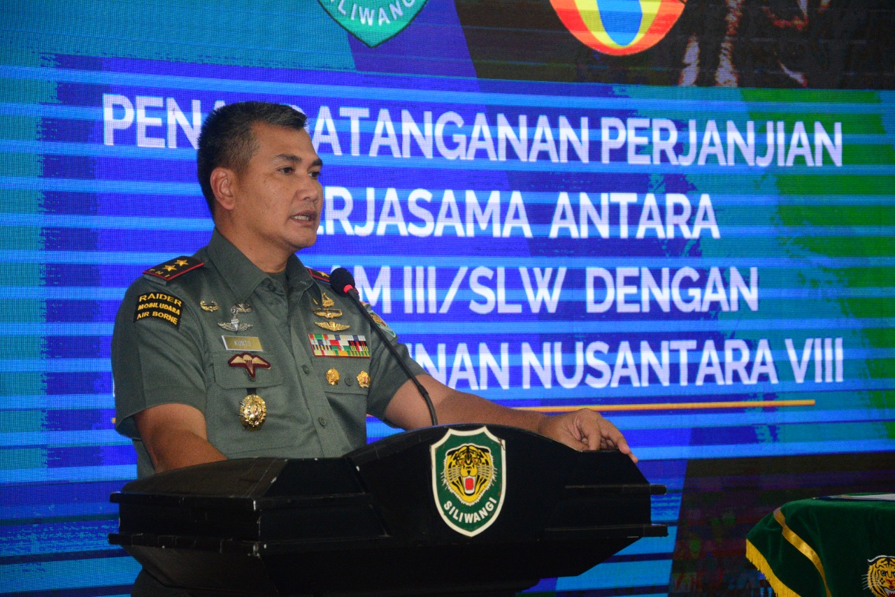 Pangdam III/Siliwangi dalam sambutannya menyampaikan ucapan terima kasih dan penghargaan yang setinggi-tingginya kepada Direktur PT. Perkebunan Nusantara VIII yang telah berkenan untuk menandatangani Perjanjian Kerja Sama dengan Kodam III/ Siliwangi. Perjanjian tentang Penguatan Pembinaan Teritorial dalam Pendayagunaan Aset di wilayah kerja PTPN VIII ini, merupakan bentuk kerja sama kemitraan yang saling menguntungkan bagi kedua belah pihak.