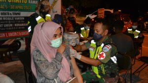 “Pelaksanaan vaksinasi yang dilakukan oleh Kodim Palangka Raya pada bulan ramadhan merupakan perintah dari Bapak Panglima TNI yang di gelar secara serentak oleh jajaran TNI dari tanggal 5 sampai dengan 30 April 2022. Pelaksanaannya pada pagi-sore hari mulai pukul 08.00 – 17.00 Wib, juga dilaksanakan vaksinasi pada malam hari mulai pukul 19.00 sampai dengan selesai,” jelas Mayor Inf Slamet Dyannur, Kamis (7/4/2022).