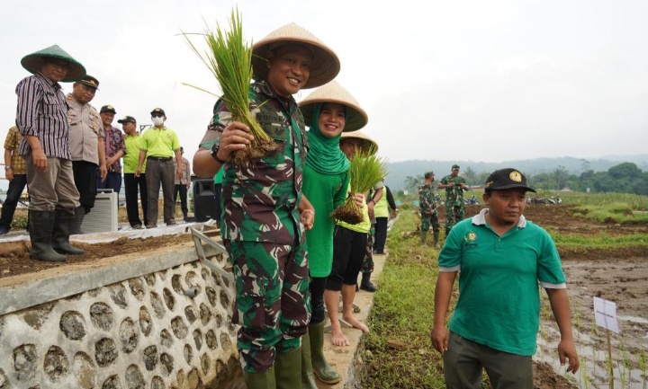 BANYUMAS | Korem 071/Wijayakusuma bersama Fakultas Pertanian Unsoed Purwokerto, dalam rangka turut serta berkontribusi meningkatkan ketahanan pangan diwilayah, berkolaborasi dengan Fakultas Pertanian Unsoed dan Komunitas Petani, Media Massa dan Dinas Pertanian Pemkab Banyumas menanam padi hasil pengembangan benih padi varietas unggul baru hasil alih teknologi varietas unggul padi protein tinggi dan teknologi produksi benih bersertifikat, di Desa Banjarsari Wetan Kecamatan Sumbang Kabupaten Banyumas, Kamis (8/12/2022).