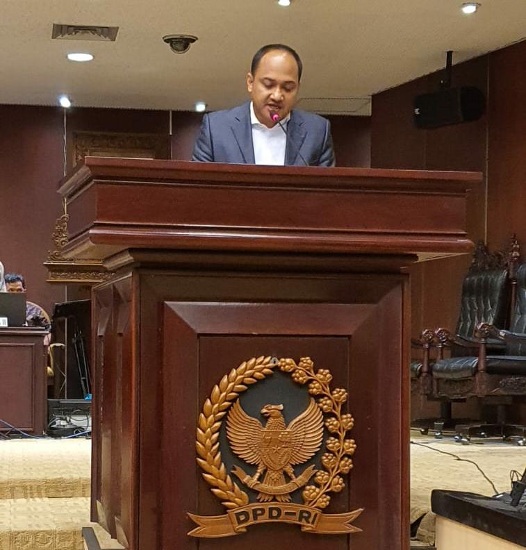 Ketua Komite I yang dipimpin H.Fachrul Razi MIP menyampaikan laporan salah satunya terkait perpanjangan masa jabatan Gubernur Papua Barat.