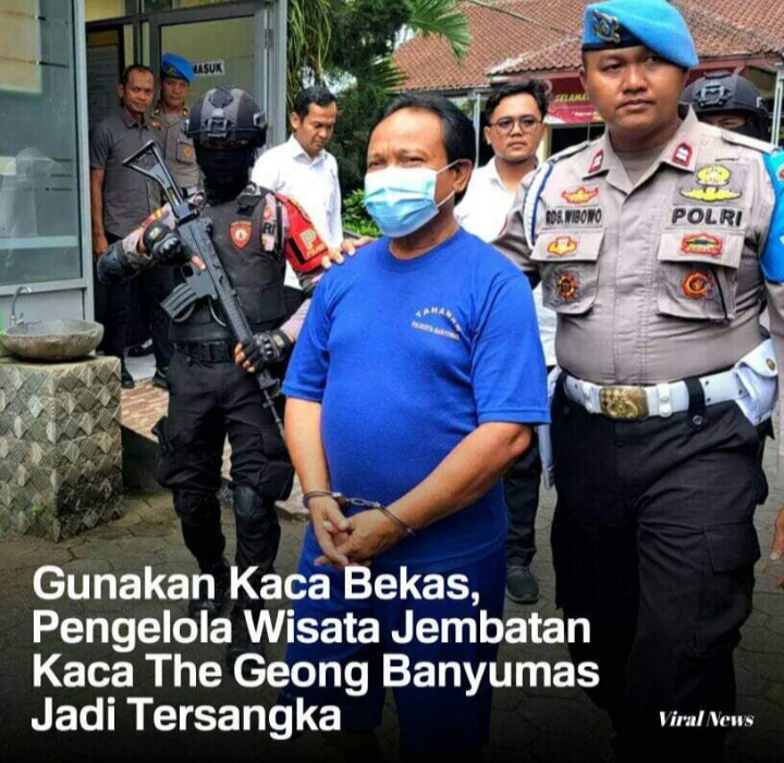 POLRES BANYUMAS – Fakta baru muncul. Gunakan kaca bekas, ES tersangka jembatan kaca pecah Limpakuwus Banyumas terancam 5 tahun penjara.