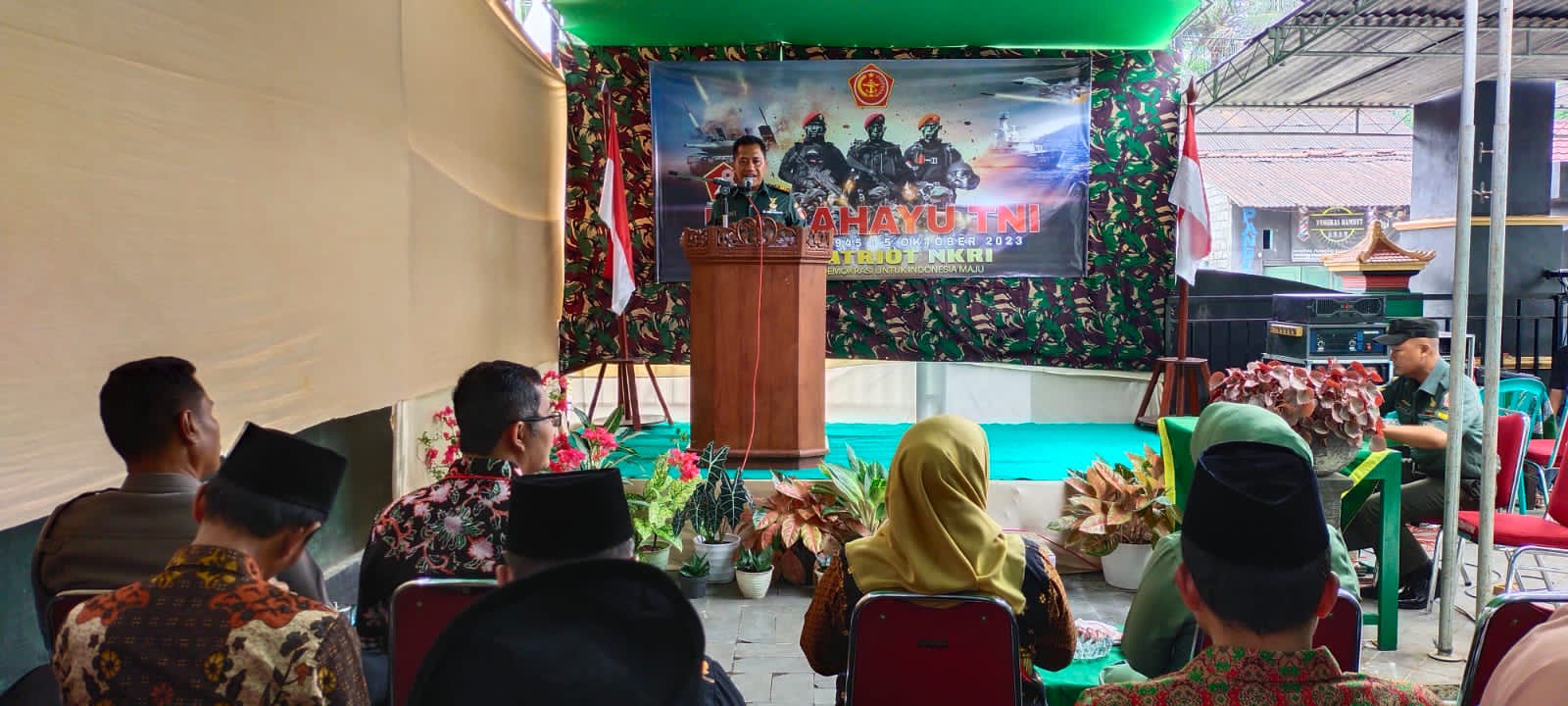 Dengan tema TNI patriot NKRI mengawal demokrasi untuk Indonesia maju, tema HUT TNI ke-78 ini, tasyakuran berlangsung di Makoramil-12/Karanganyar, Purbalingga, Kamis (12/10/2023).