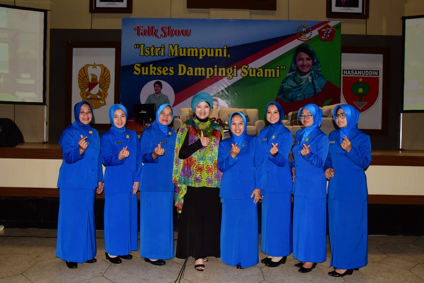 Talkshow dengan tema “Istri Mumpuni, Sukses Dampingi Suami” Ini dibuka secara resmi oleh Ketua Persit KCK PD XIV Hasanuddin Ny. Desi Totok Imam dan sebagai narasumber Ny. Ratih Sanggarwati,