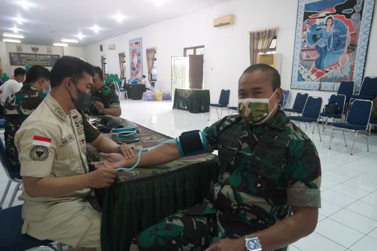 SERANG | Dalam rangka memperingati HUT Kodam III/Siliwangi Ke 76 dan HUT Korem 064/MY Ke 56 Prajurit dan PNS Makorem dan Dinas jawatan jajaran Korem 064/MY mendonorkan darahnya, bertempat di Aula Makorem 064/MY Jln Maulana Yusuf No 9 Kota Serang, Selasa (10/5/2022).