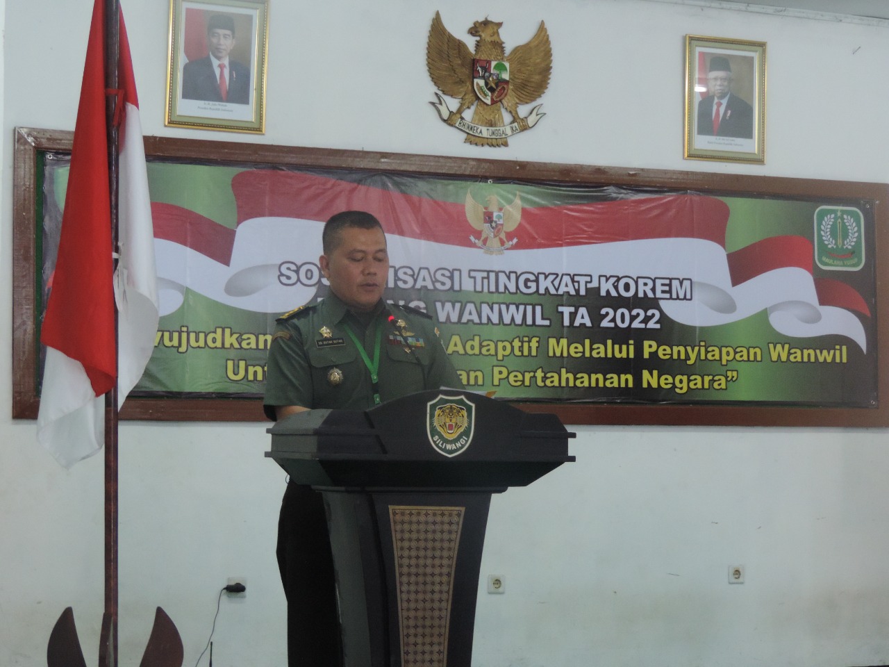 Komandan Korem 064/MY, Brigjen TNI Yunianto dalam amanat tertulisnya yang dibacakan Kasiter Korem 064/MY Kolonel Inf Saut Batara mengatakan, sosialisasi bidang Wanwil ini bertujuan untuk mentransformasi kekuatan pertahanan negara yang siap digunakan untuk kepentingan Pertahanan Negara.