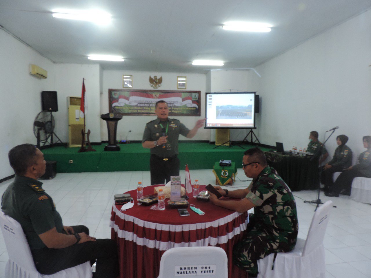 SERANG | Guna untuk mewujudkan Pembinaan Teritorial (Binter) yang Adaptif dalam rangka menyiapkan Wanwil untuk kepentingan negara di wilayah, Korem 064/MY menggelar Sosialisasi Bidang Wanwil Tahun 2022 di Aula Makorem 064/MY Jln Maulana Yusuf No 9 Kota Serang. Kamis (2/6/2022).