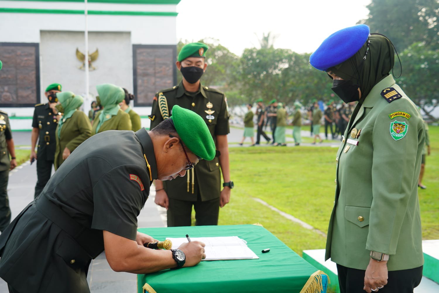 SERANG | Dalam rangka memperingati HUT Kodam III/Siliwangi ke 76 dan HUT Korem 064/MY yang ke 56 , Korem 064/MY melaksanakan ziarah rombongan dipimpin Komandan Korem 064/MY Brigjen TNI Yunianto di Taman Makam Pahlawan Ciceri Kota Serang, Jumat ( 20/05/2022 ).