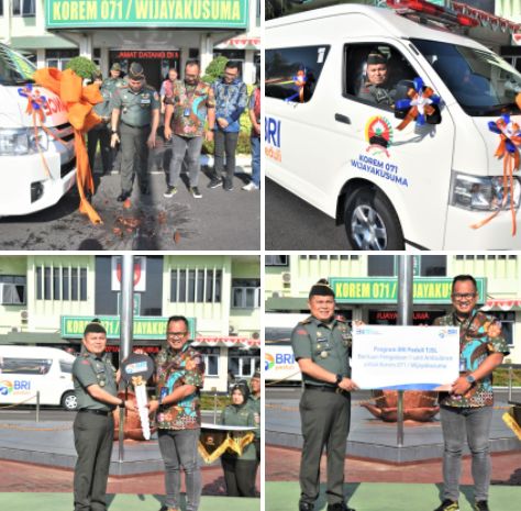 “Terima kasih dan penghargaan yang tinggi kepada BRI Cabang Purwokerto atas bantuan hibah Ambulance ini, tentunya dengan bantuan ini sangat bermanfaat dalam mendukung tugas operasional Korem 071/Wijayakusuma dalam misi kemanusiaan memberikan pelayanan kesehatan yang cepat kepada prajurit Korem dan keluarganya serta membantu kesulitan masyarakat sekitar Korem yang membutuhkan,” ucap Danrem.