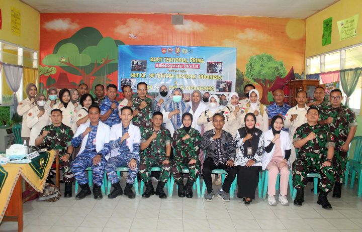 “Kita lakukan kegiatan di tengah lingkungan masyarakat ini untuk memberikan pelayanan prima kepada masyarakat akan kesehatannya. Kegiatan ini juga sebagai bentuk nyata dari Kemanunggalan TNI, karena TNI selalu hadir di tengah masyarakatnya, tidak hanya menjaga kedaulatan negara tapi juga memberikan manfaat langsung dalam setiap tindakan dan karya nyata untuk kepentingan masyarakat, bangsa, dan negara,” terangnya.