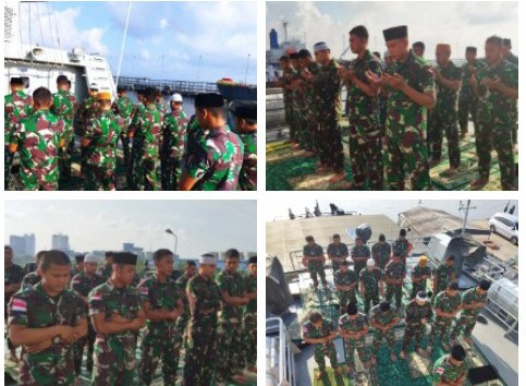 Pelaksanaan Doa Bersama, Shalat Ghaib serta Pengibaran bendera merah putih setengah tiang di KRI LEPU-861 lancar dan khidmat.