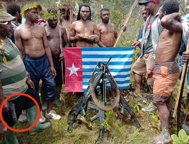 Terkait dengan pistol yang digunakan oleh KST, pihaknya mengindikasikan senjata pistol tersebut merupakan salah satu senjata organik milik TNI AD yang hilang ketika Heli MI 17 milik Penerbad jatuh pada tahun 2019 silam di Kab. Pegunungan Bintang.
