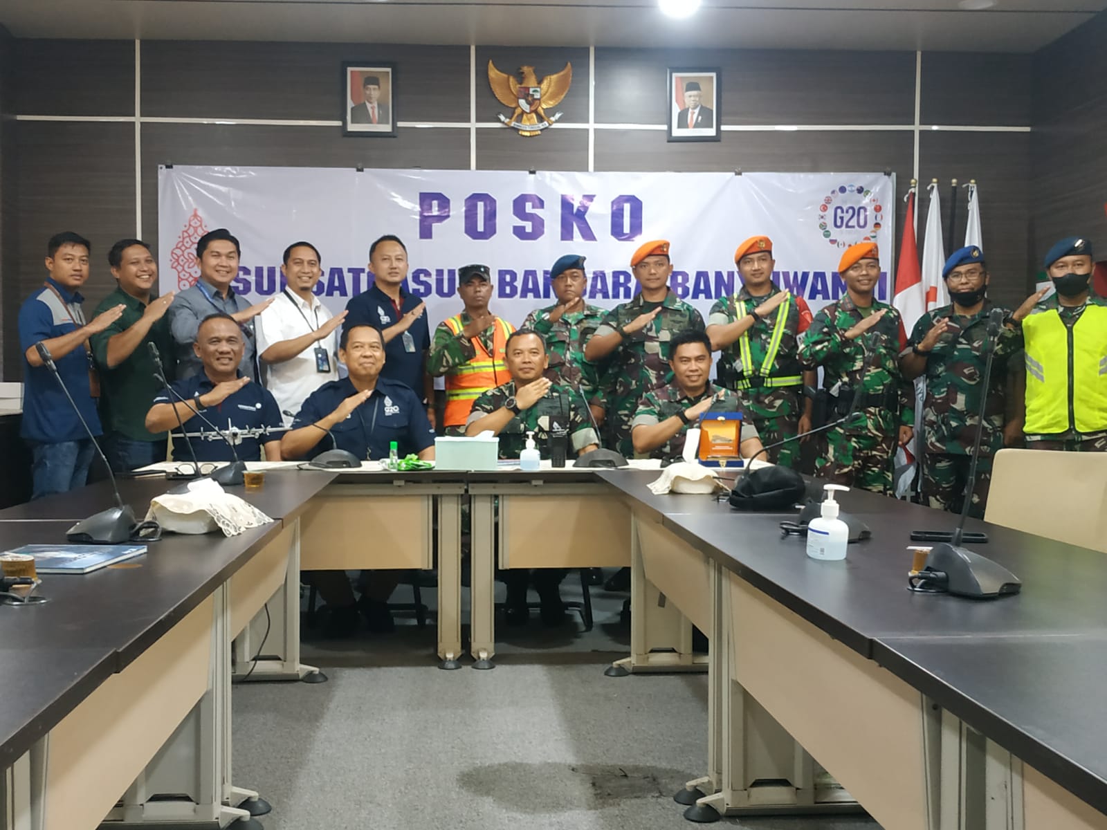 BANYUWANGI | Direktur Operasi AP2 Angkasa Pura di Bandara Banyuwangi, Muhammad Wasid menyampaikan ungkapan banyak terimakasih kepada Dansubsatgas dan rekan-rekan dari TNI AU yang sudah bekerja keras dan bersinergi dengan Angkasa pura 2 yang berada di Bandara Banyuwangi dalam mensukseskan acara besar yaitu KTT G20 yang berada dibali, Kamis (17/11/2022).