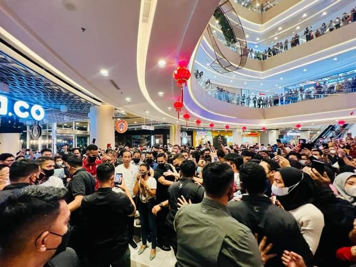 PEKANBARU | Di tengah kunjungan kerjanya ke Provinsi Riau, Presiden Joko Widodo menyempatkan diri untuk menyapa warga Kota Pekanbaru di Mal Living World yang berada di Jalan Soekarno Hatta, Kota Pekanbaru, pada Rabu malam, 4 Januari 2023.