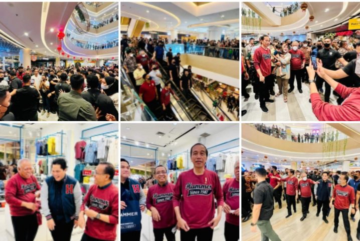 Tiba sekitar pukul 20.15 WIB, Presiden Jokowi didampingi Menteri Sekretaris Negara Pratikno, Menteri PUPR Basuki Hadimuljono, dan Menteri BUMN Erick Thohir langsung berjalan masuk untuk menyapa warga dan berswafoto di lantai dasar mal. Melihat antusiasme warga yang juga menyapa dari lantai atas, Presiden bersama para menteri pun kemudian naik menuju lantai 1 dengan menggunakan eskalator.