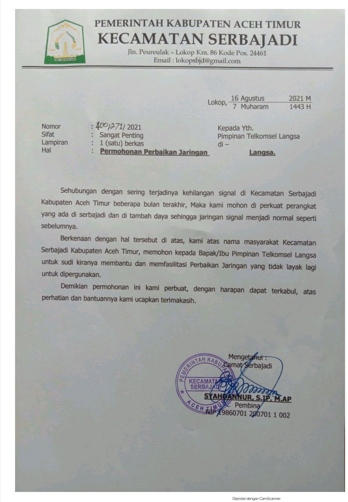 Sumarja menambahkan” jaringan Tellkomsel rusak di Serbajadi sudah sering di laporkan oleh masyarakat kepada pimpinan PT. Tellkomsel Cabang Langsa, baik itu melalui Whatshap maupun melalui media, bahkan Camat Serbajadi sudah mengirim surat ke PT. PLN Langsa, pada Agustus 2021 yang lalu, untuk meminta agar PT. Tellkomsel Langsa supaya memperbaiki jaringan Tellkomsel di Serbajadi,”ungkapnya.