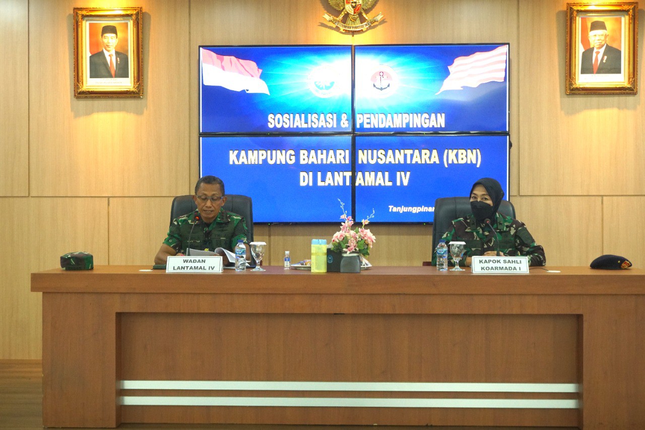 Tanjungpinang | Pangkalan Utama TNI Angkatan Laut (Lantamal) IV (empat) melaksanakan Sosialisasi dan Pendampingan Kampung Bahari Nusantara (KBN) di Gedung Serbaguna Yos Sudarso Markas Komando (Mako) Lantamal IV, Jalan Yos Sudarso, Tanjungpinang, Selasa (22/03/2022).