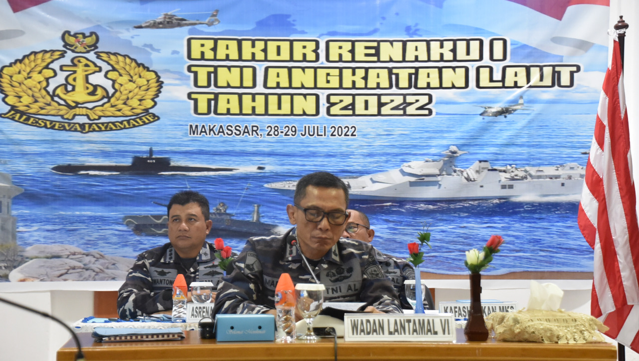 Dalam Rakor Renaku I TNI AL tersebut Wakil Komandan Lantamal VI Kolonel Marinir Marsono. S.A.P. mewakili Komandan Lantamal VI Laksamana pertama TNI Dr. Benny Sukandari, S.E, M.M., CHRMP, didampingi Asrena Danlantamal VI dan Kafasharkan Makassar hadir secara virtual.