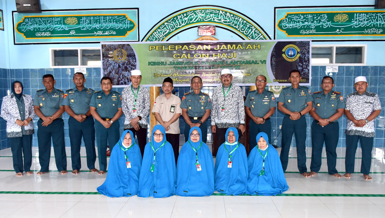 MAKASSAR | Pangkalan Utama TNI AL VI (Lantamal VI) Makassar melepas secara resmi jama’ah calon haji Kelompok Bimbingan Ibadah Haji Dan Umroh (KBIHU) Jami’atul Bahari Tahun 1443 H/ 2022 M bertempat di Masjid Jamiatul Bahari Mako Lantamal VI, Selasa (15/06/2022).