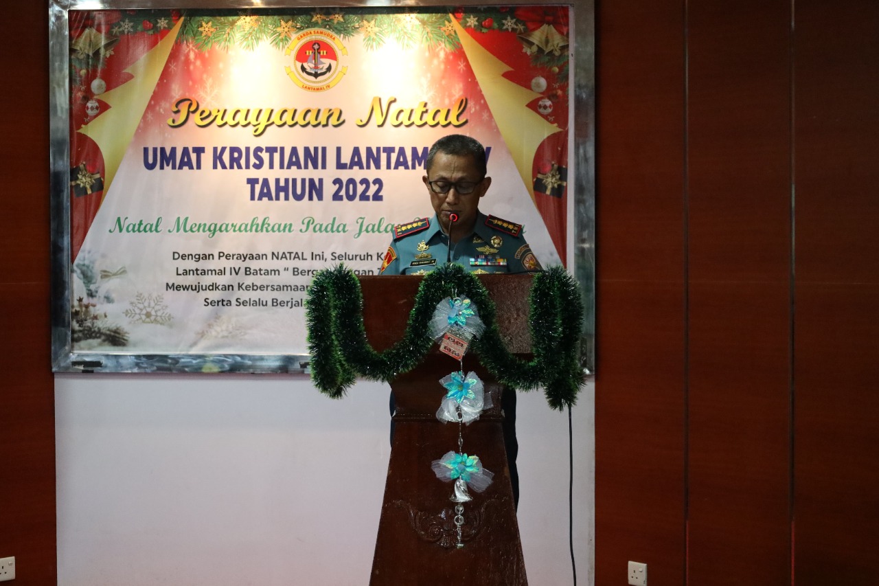 Dalam sambutannya Komandan Lantamal IV Batam yang dibacakan oleh Wadan Lantamal IV Kolonel Mar Andi Rahmat M, menyampaikan perayaan Natal kali ini dimaksudkan sebagai ungkapan rasa syukur umat Nasrani kepada Tuhan yang maha pengasih keselamatan dan kesejahteraan yang telah dilimpahkan selama ini. Dengan adanya kegiatan seperti ini, seluruh umat Nasrani dapat meningkatkan keimanannya kepada Tuhan serta mendorong dan mengimplementasikannya dalam kehidupan sehari-hari secara teguh dan konsisten.