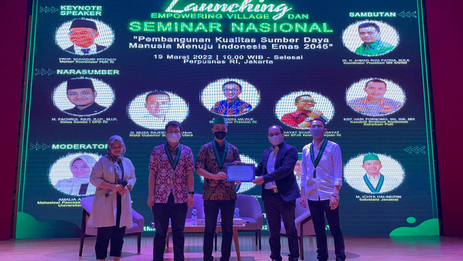 JAKARTA | Pengurus Besar Himpunan Mahasiswa Islam (PB-HMI) menggelar Launching Empowering Village dan Seminar Nasional dengan tema, “Pembangunan Kualitas Sumber Daya Manusia Menuju Indonesia Emas 2045”. Kegiatan dilaksanakan di Gedung Perpusnas RI, Sabtu (19/3/22).