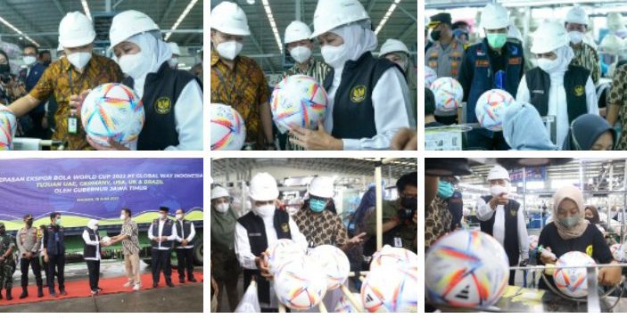 “Alhamdulillah hari ini kita bersama melepas ekspor bola kelima negara. Kelima negara tersebut kualitas sepak bolanya diakui dunia. Kita semua bahagia dan bangga bahwa dari Bumi Kampung Pesilat Kabupaten Madiun menghadirkan produksi bola kualitas piala dunia dan siap dilepas ekspor,” ujar Khofifah.