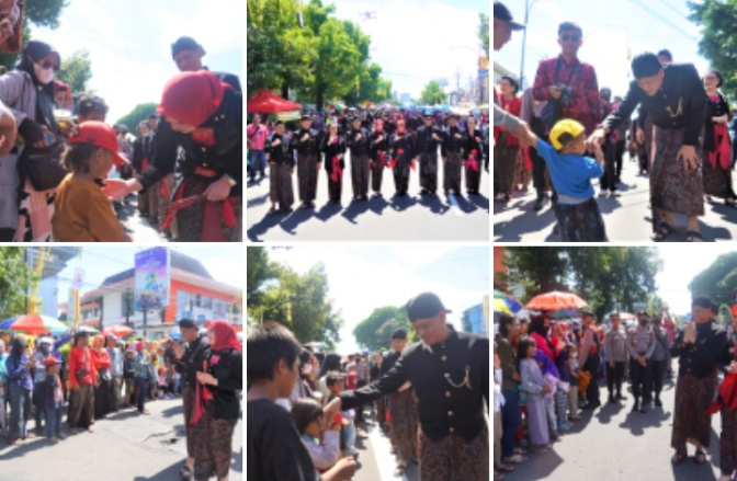 Dengan mengenakan pakaian tradisional Banyumas, Danrem 071/Wijayakusuma Kolonel Inf Yudha Airlangga, S.E., beserta Ketua Persit Kartika Chandra Kirana Koorcab Rem 071 PD IV/Diponegoro Ny. Natania Yudha Airlangga, mengikuti prosesi Kirab Pusaka Banyumas dari Pendopo Wakil Bupati Banyumas menuju pelataran Alun-alun Purwokerto.