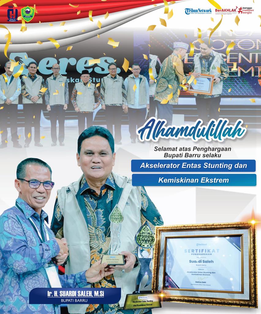 “Sekali lagi saya katakan bahwa Penghargaan ini kita raih tentunya atas dukungan dan komitmen bersama seluruh masyarakat Kabupaten Barru untuk bersama-sama dalam memerangi stunting dan kemiskinan ekstrim,” kata Suardi Saleh.